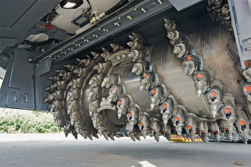 The scrapers are designed to ensure that the milling drum housing is well sealed and there are no gaps, ensuring that the pick-up of the milled material can be carried out in a clean manner. In addition, it even the surface that has just been milled and prevents residues from the milled material.